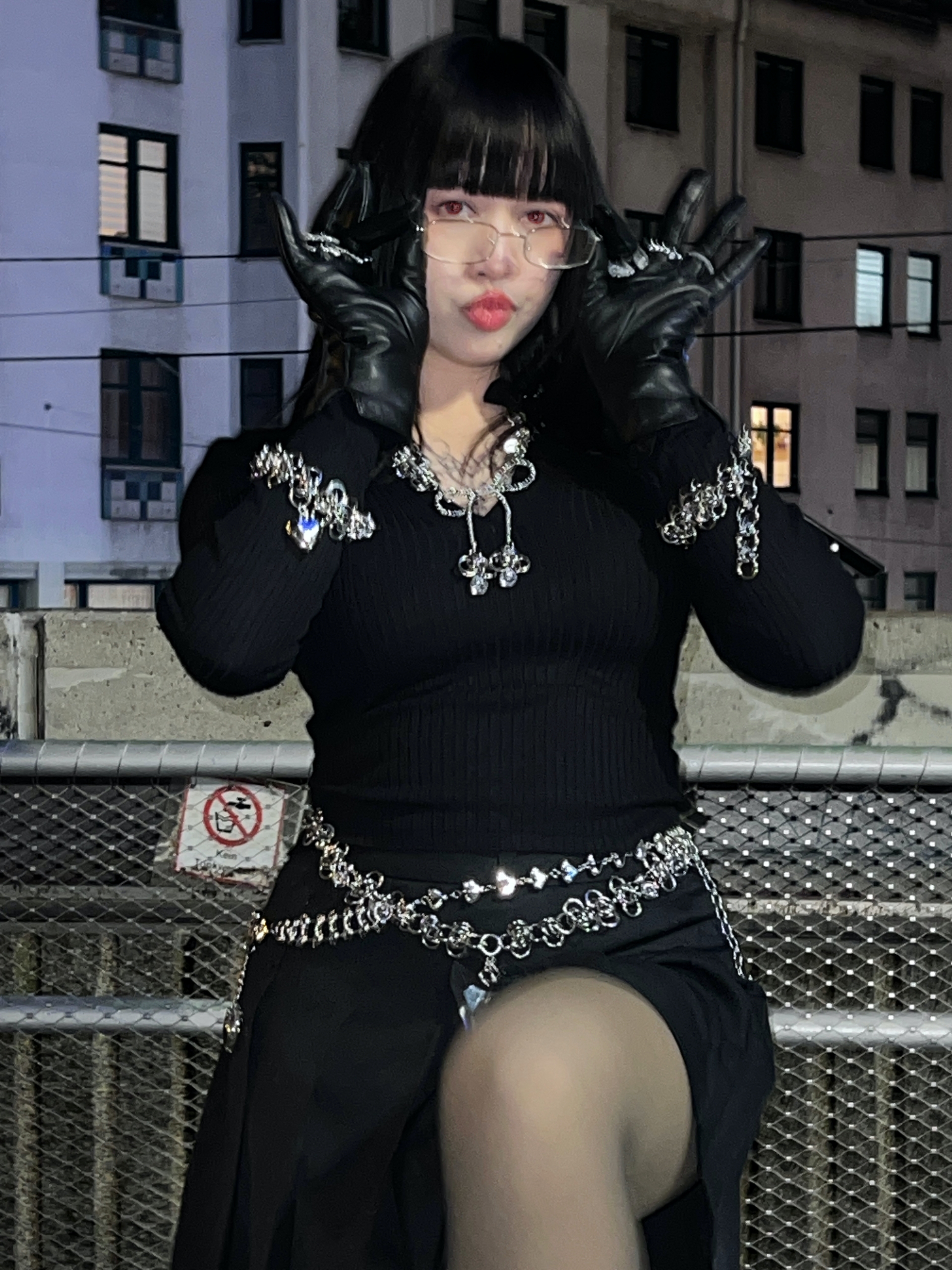 Handmade mouse doll face bedazzled necklace (unique)