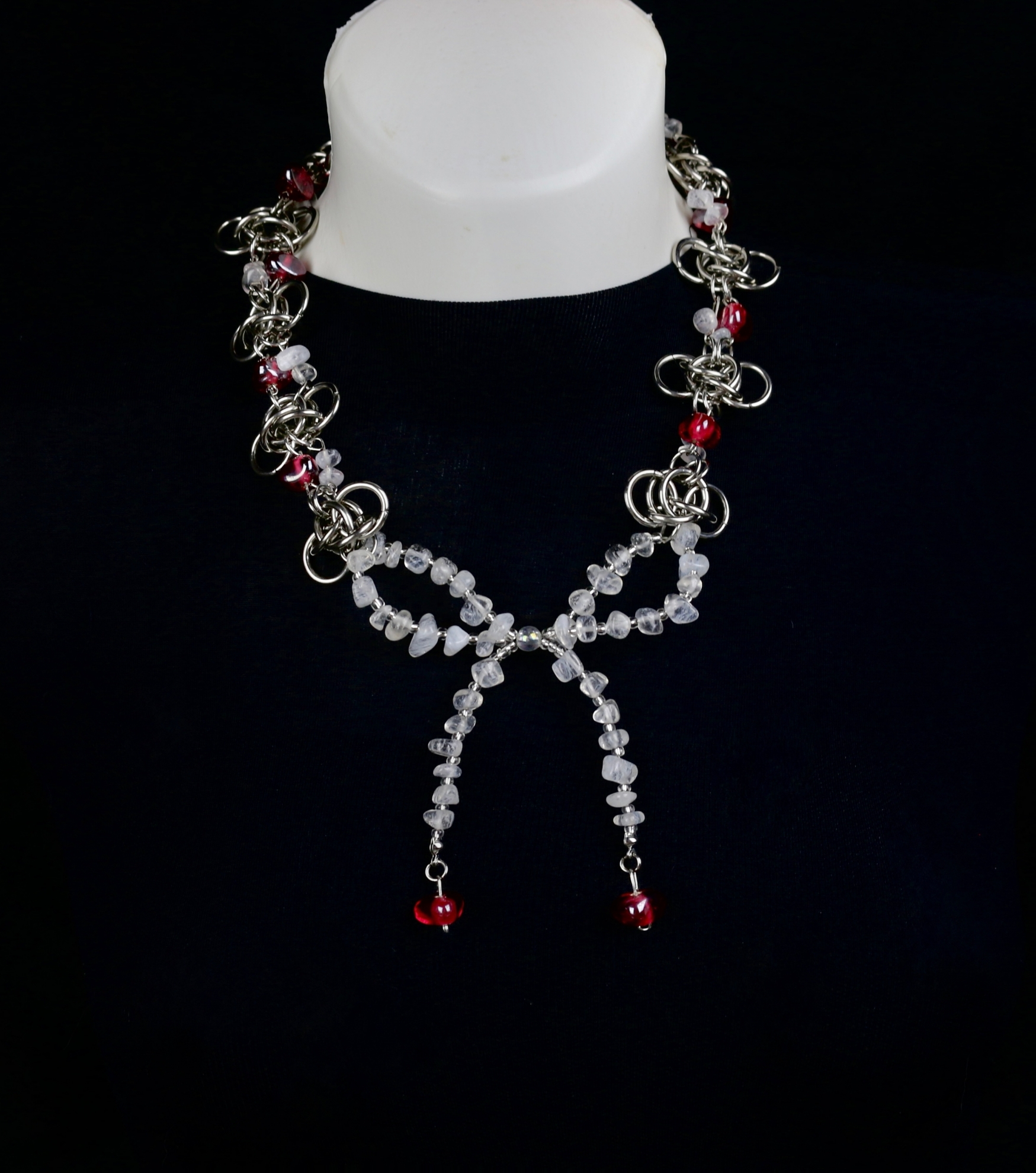 Handmade necklace with unique resin beads , real stones beads and stainless steel chain . Unique piece, only a few available.