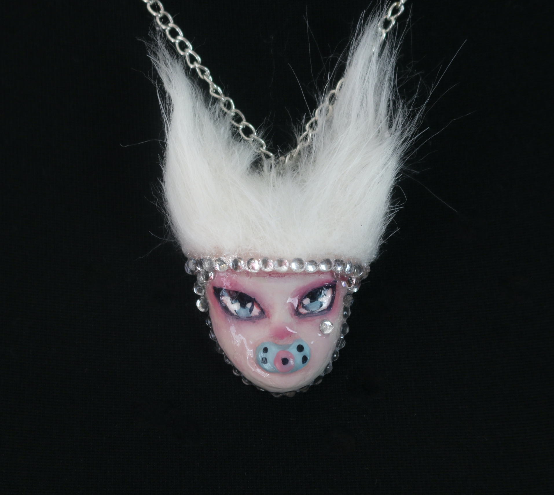 Handmade fluffy hybrid doll face baby necklace (unique)