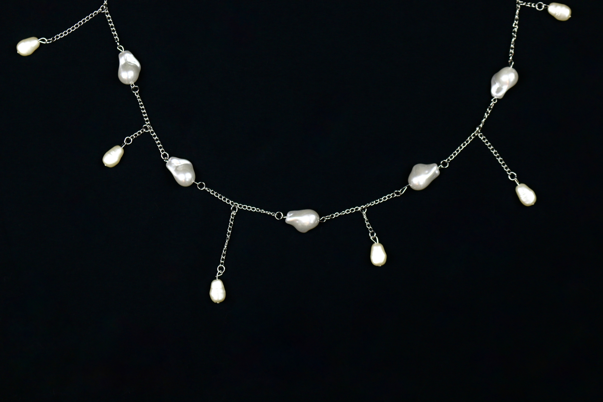 Handmade stainless steel waist chain / body chain with unique faux pearl beads. Can be worn around the waist, around the lower hip area or as a long necklace.