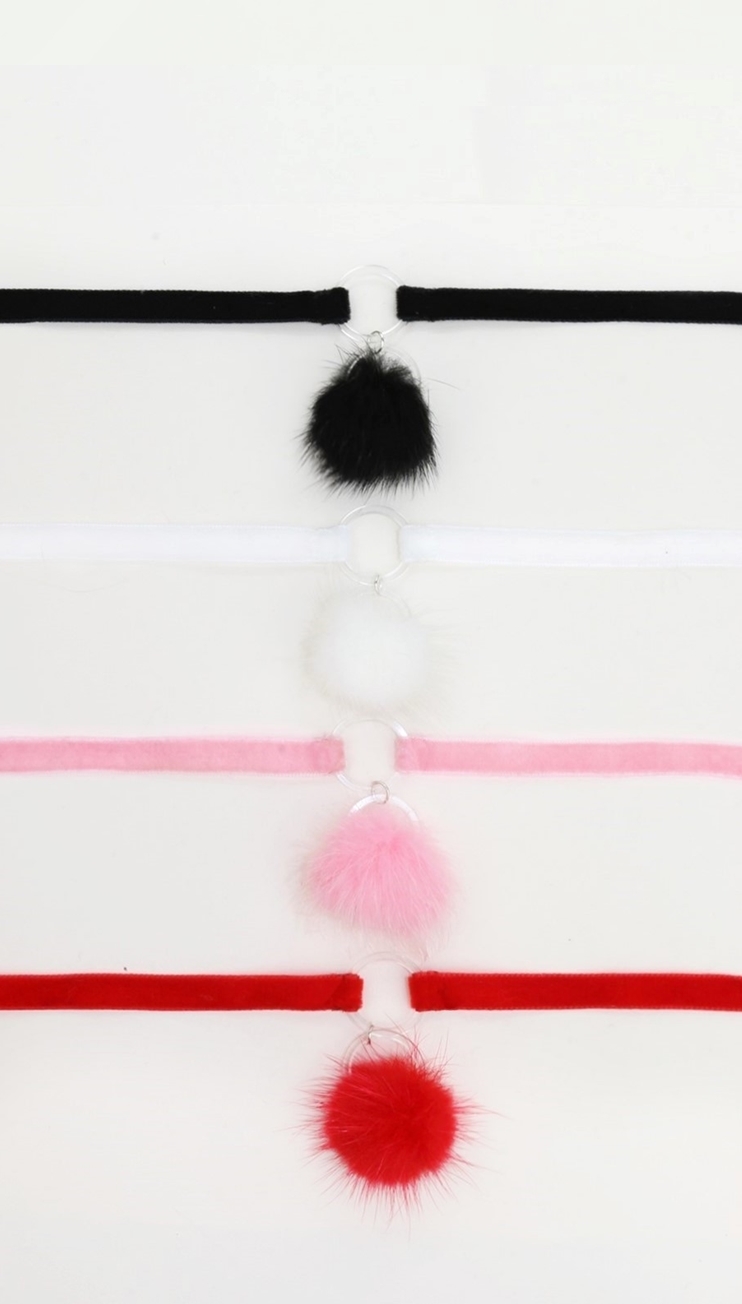 Lovely velvet choker with furry pompom charm.