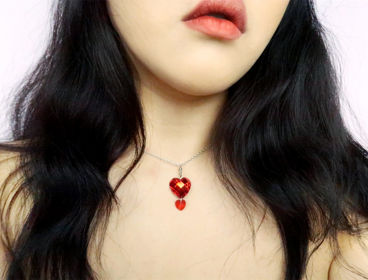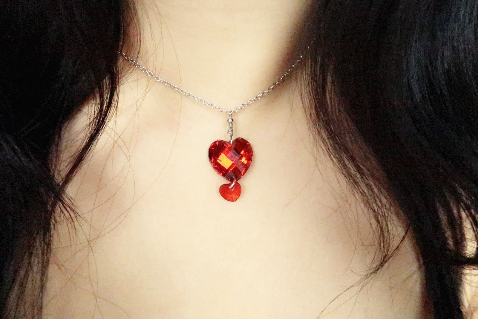 Silver necklace with heart crystal charm.