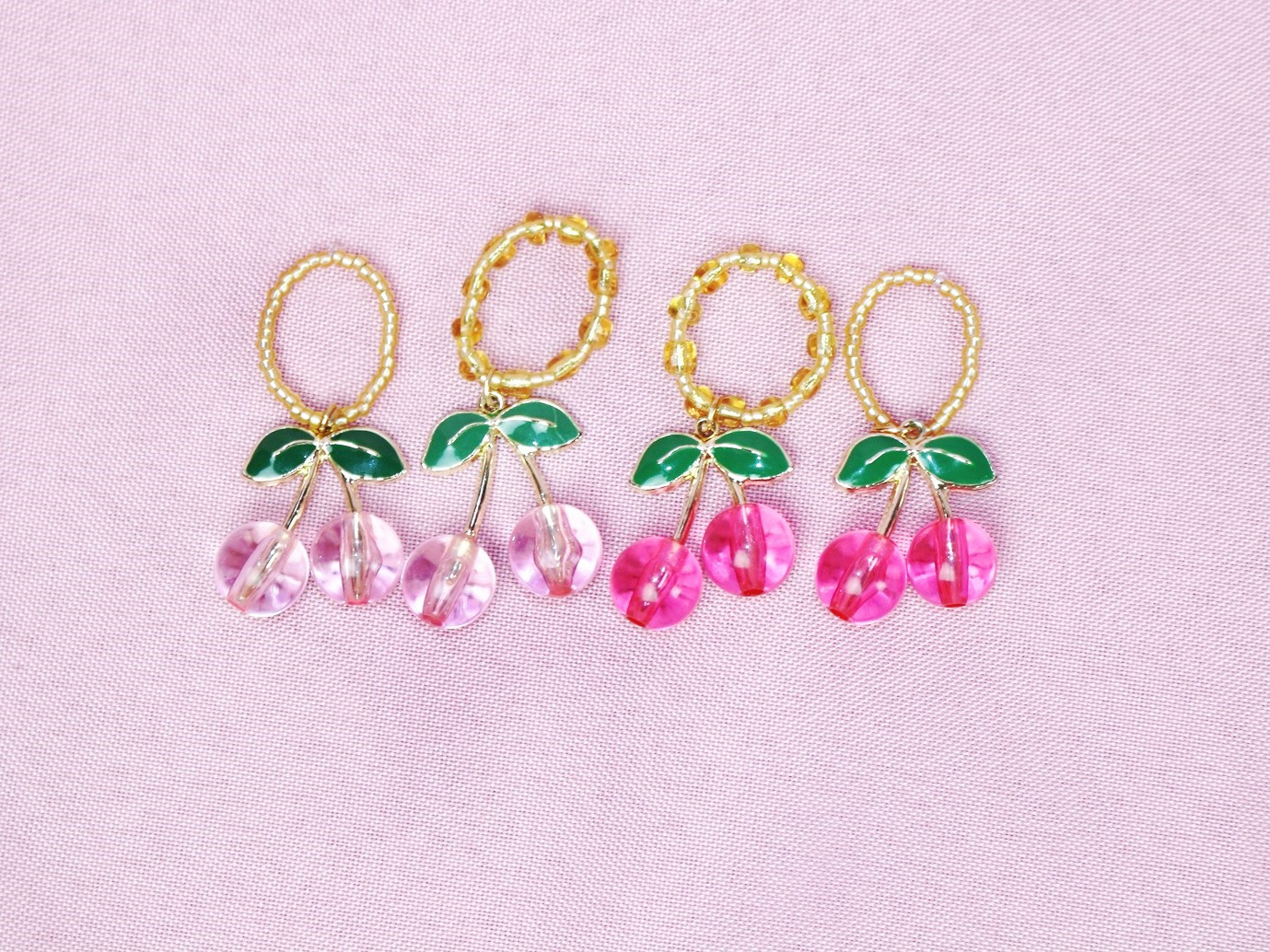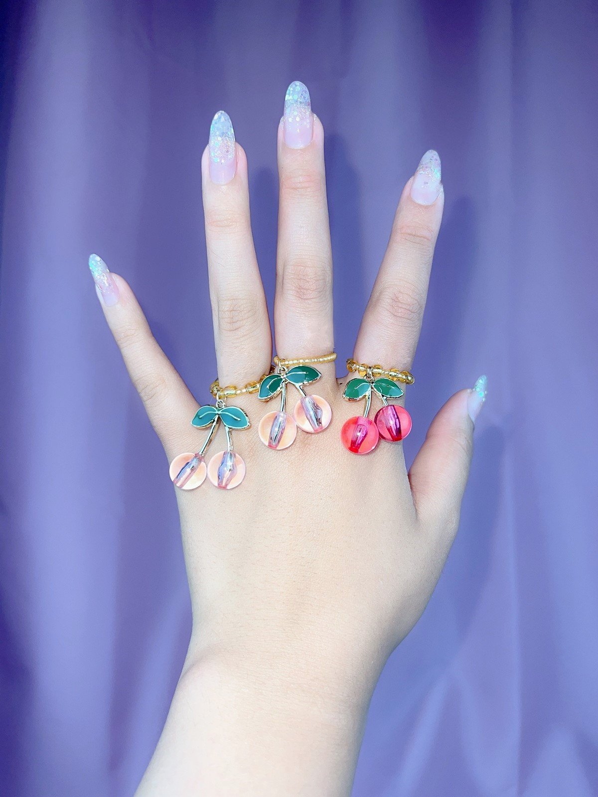 Handmade elastic rings with cherry charm. Limited!