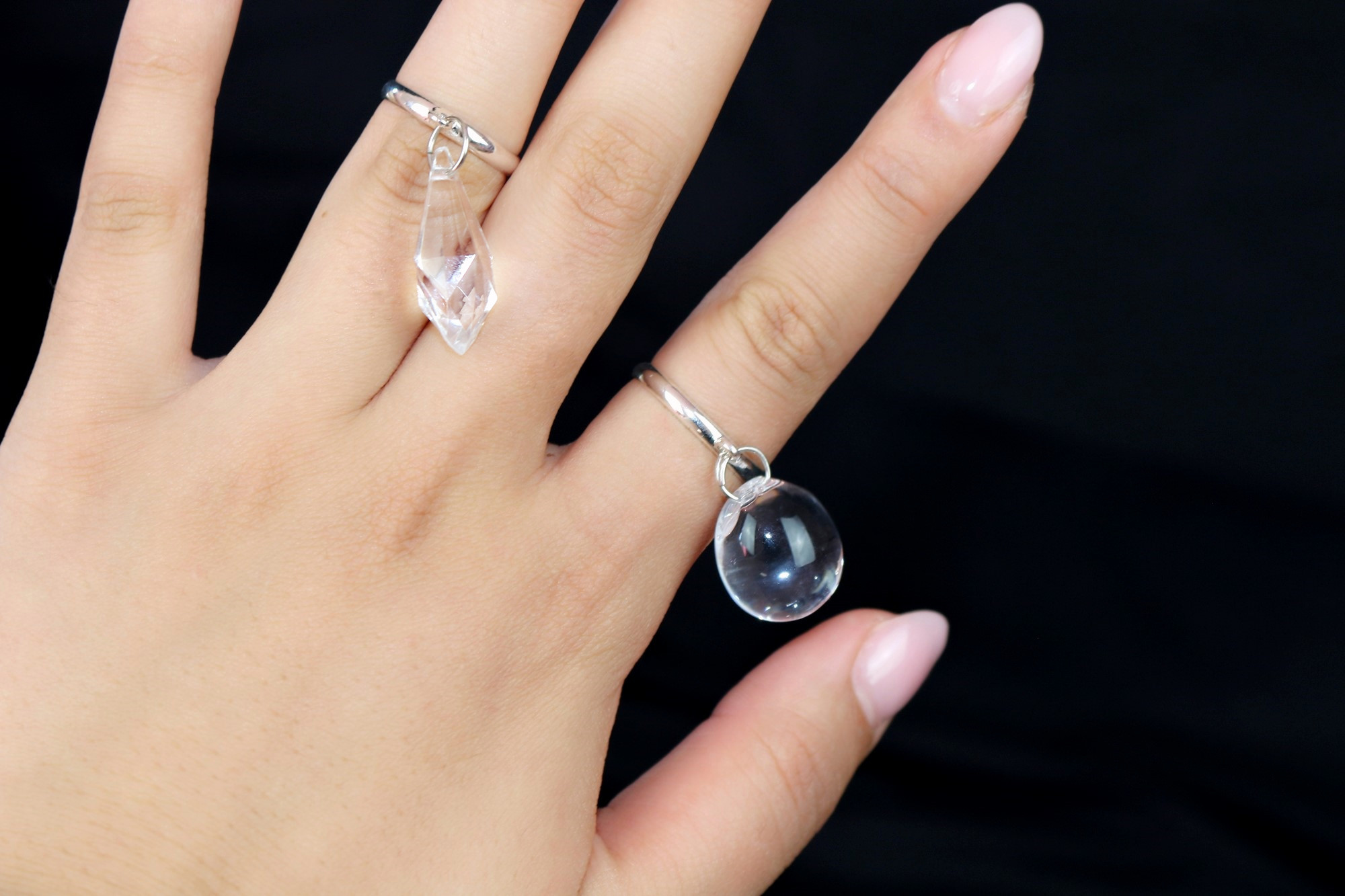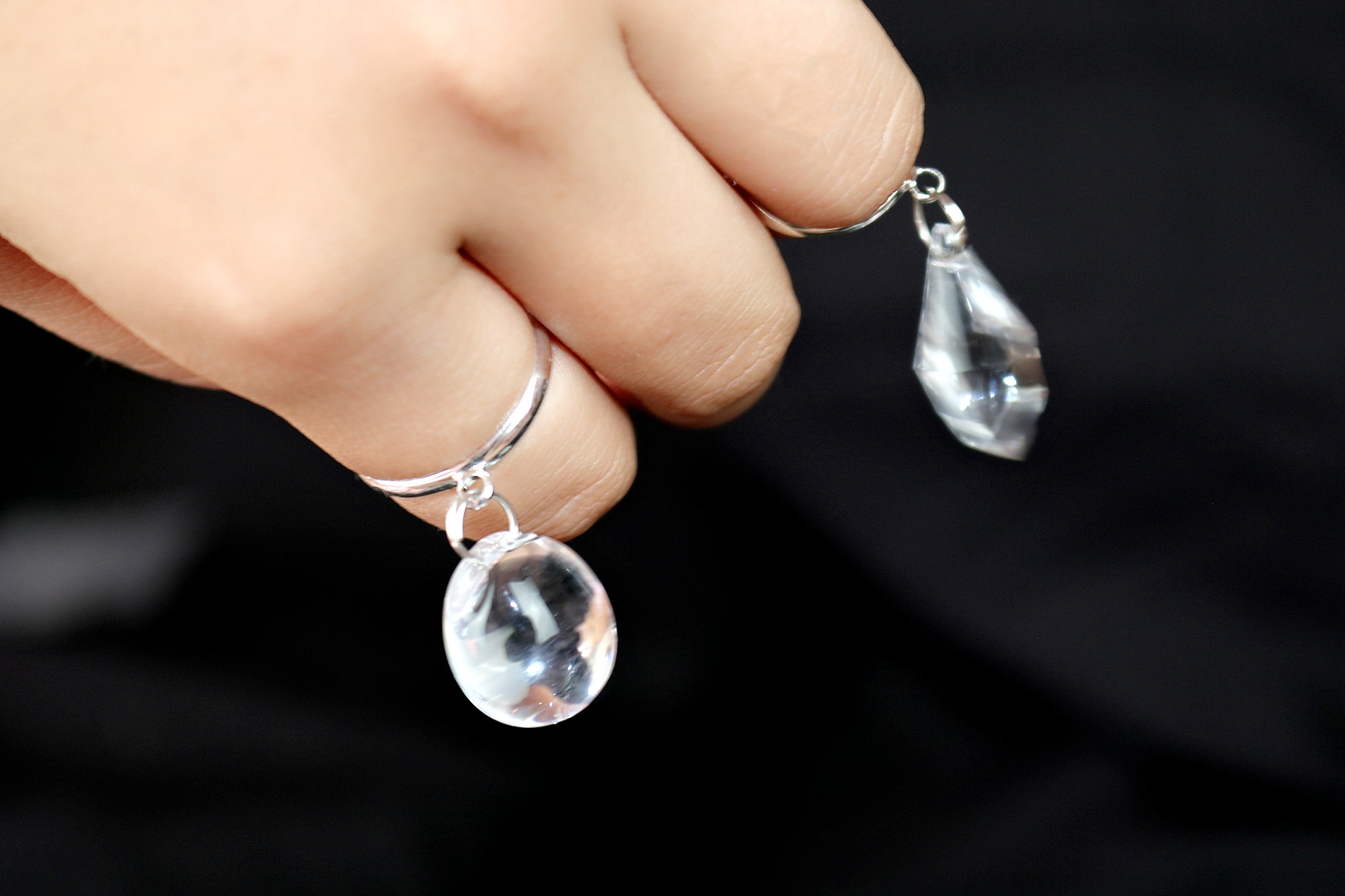 Adjustable ring with clear dangly charm.