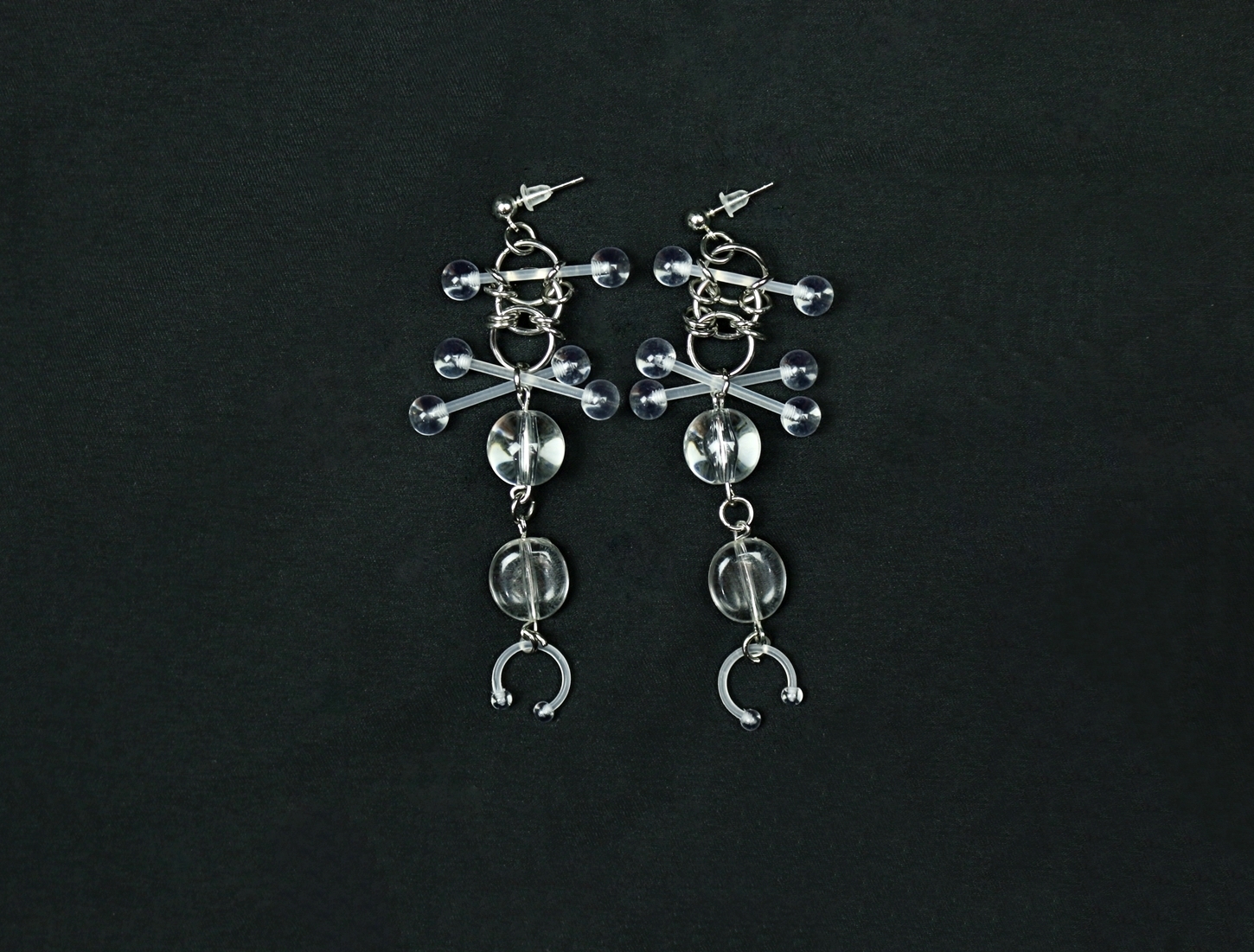 Handmade earrings, limited. Real clear piercings are used, please always make sure the closure ball is secured.