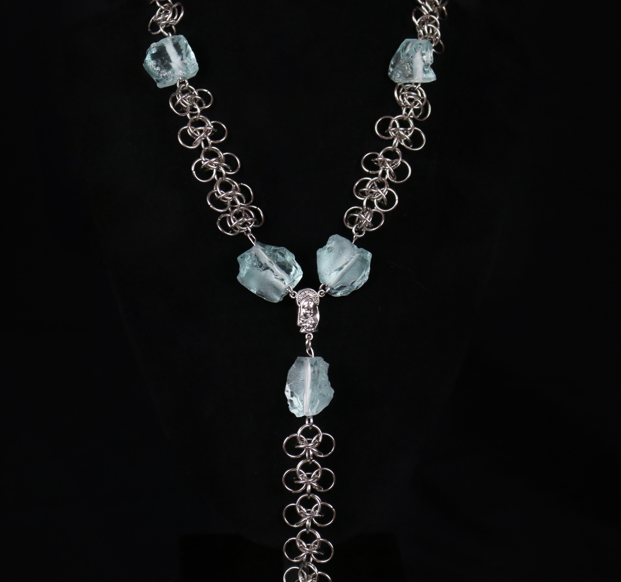 Handmade rosary chainmaille necklace with special unique beads. Only a few available.