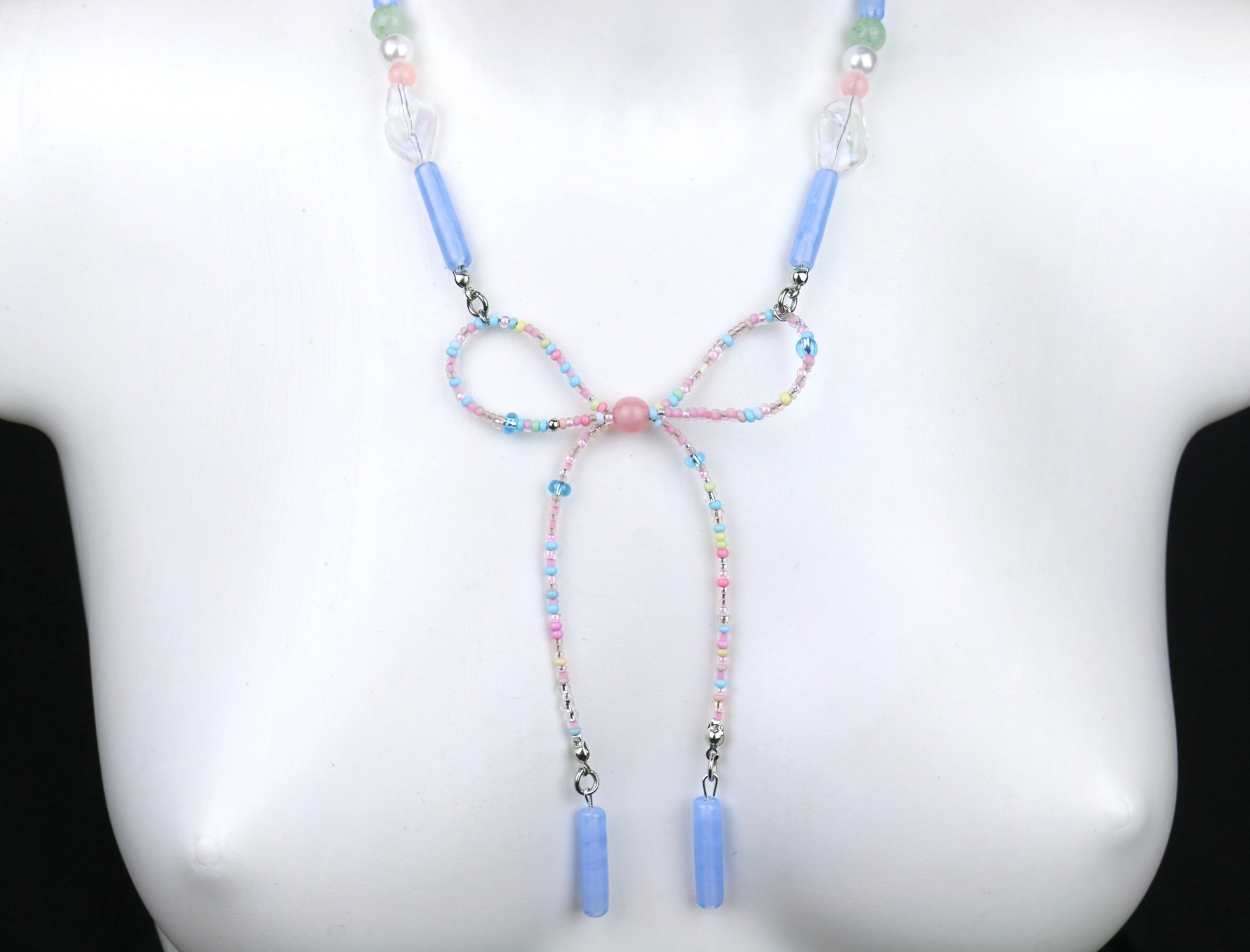 Handmade beaded necklace with faux pearls & unique glass beads.