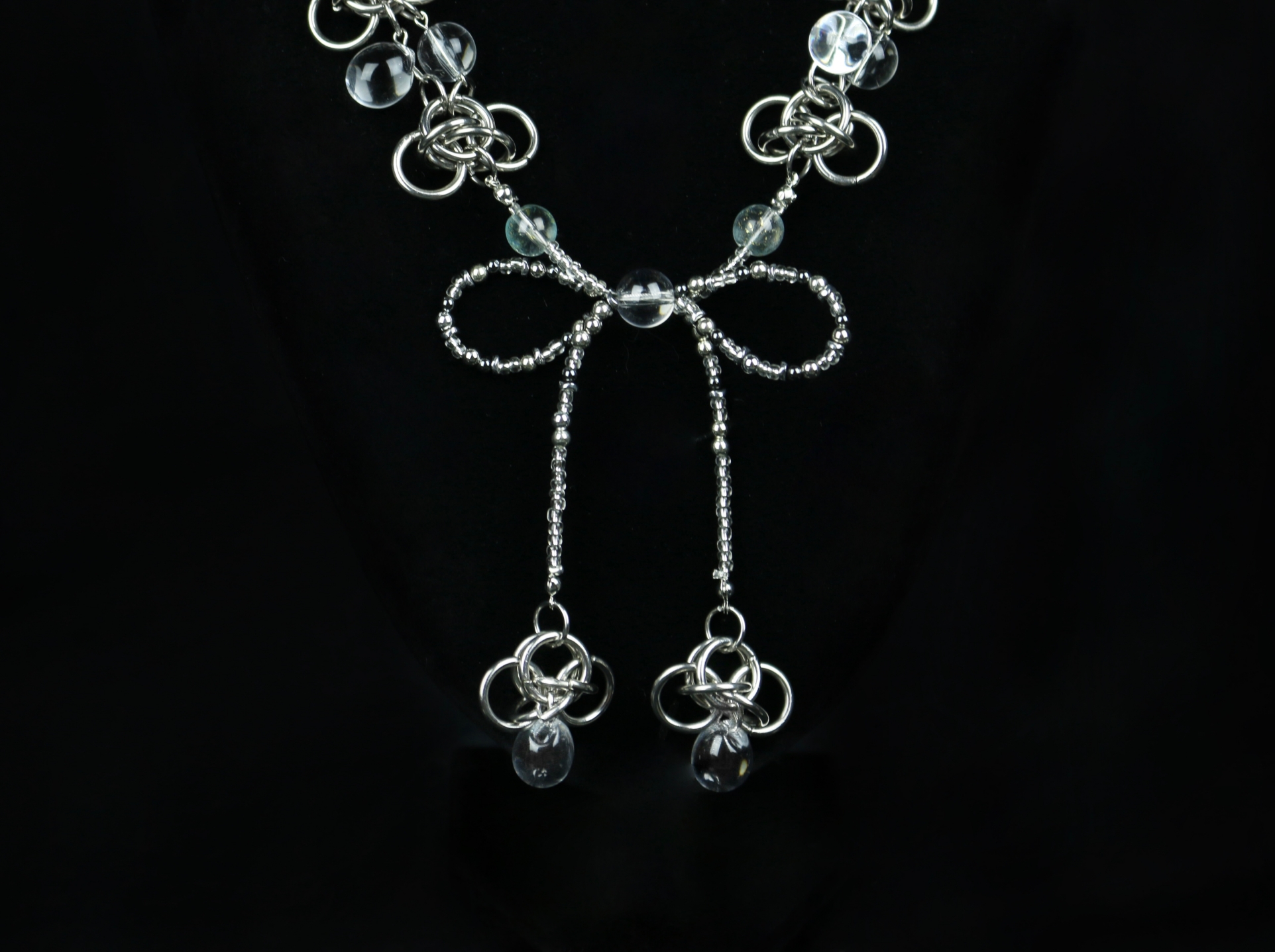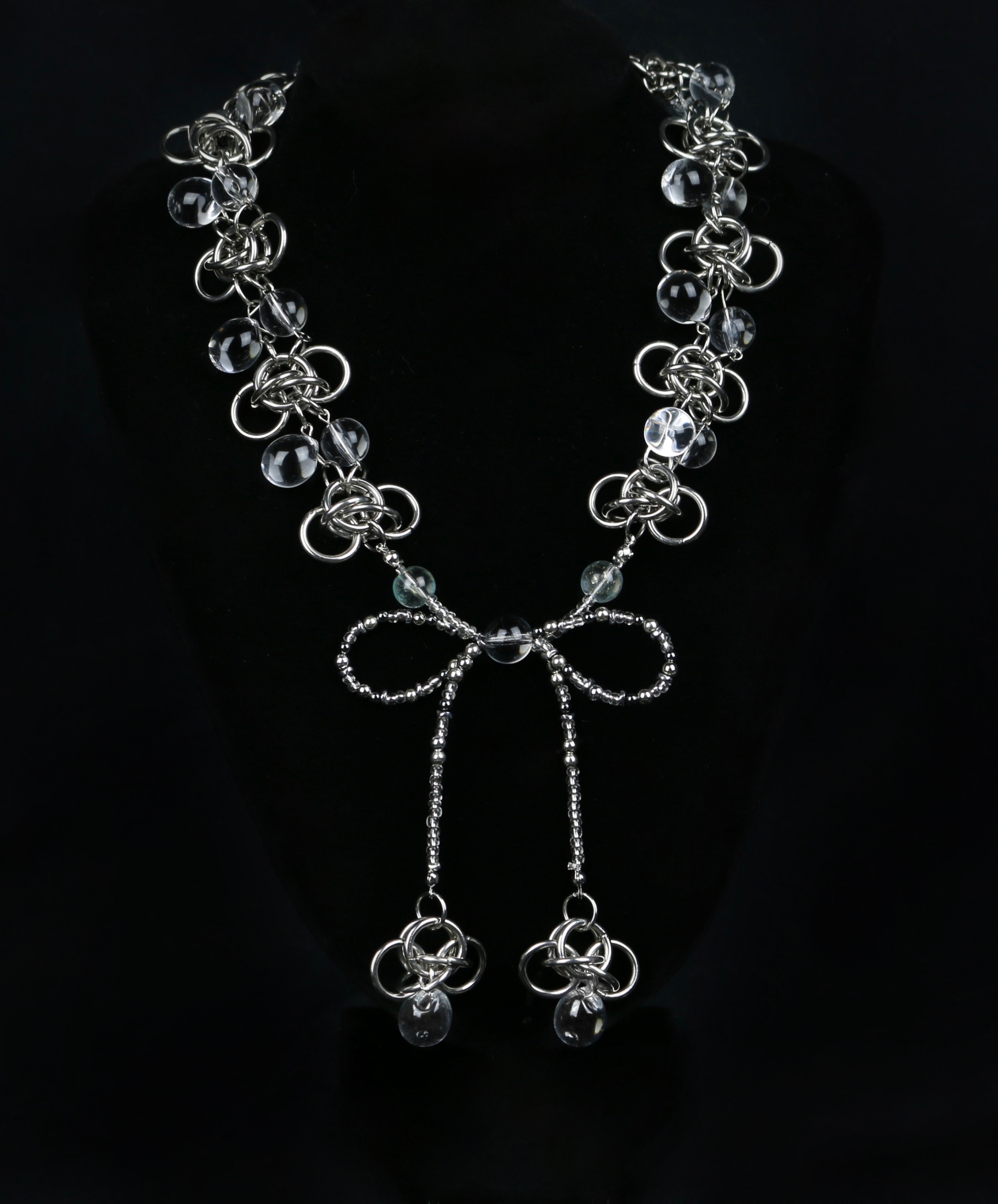 Handmade necklace with unique beads and stainless steel chain. Unique piece, only a few available.