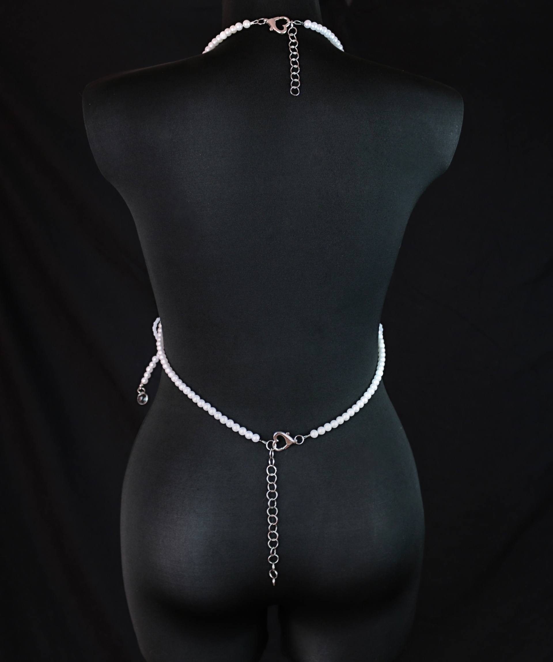 Handmade beaded harness with cute bows that frame the chest area. Limited ! Only a few available.