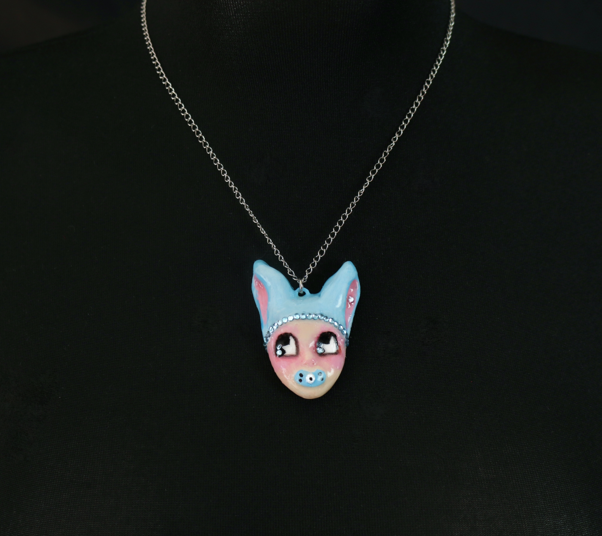 Handmade doll face necklace coated with durable resin varnish for long lasting wear. Unique piece, only one available.