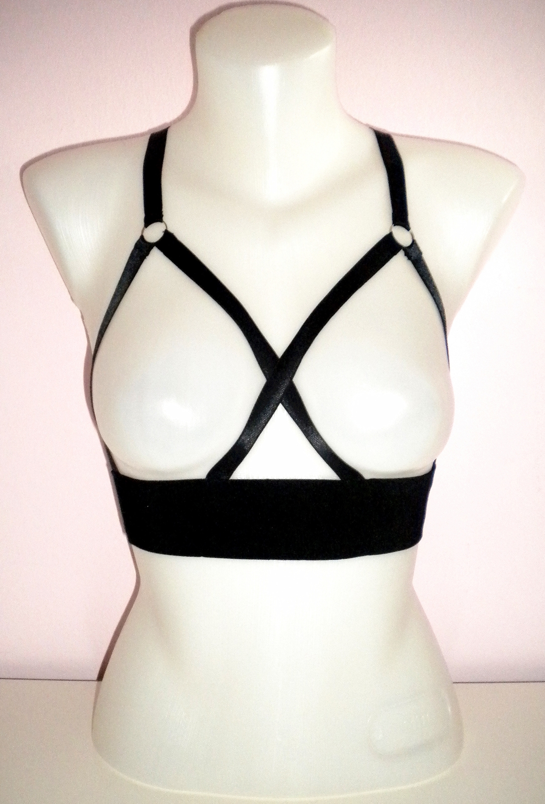 Made with black soft elastic knit band, black elastic satin and different size O - rings.